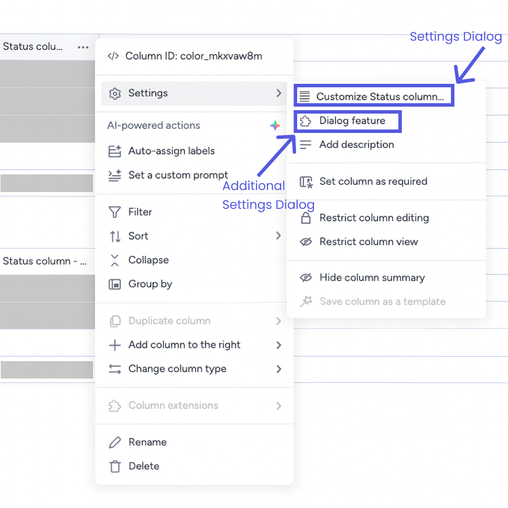 - Column Settings Dialog: Configure what appears when the column's settings are selected