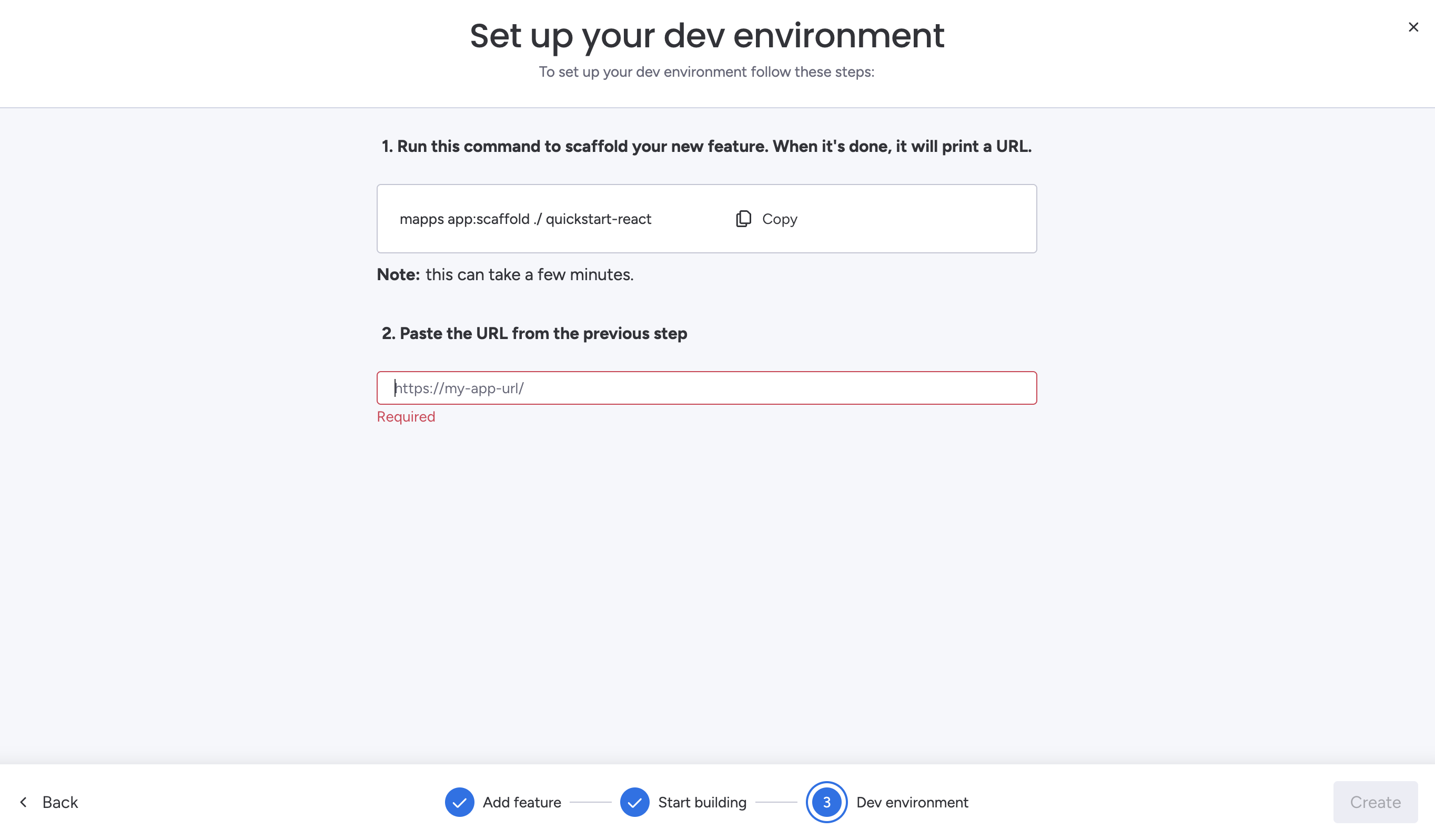 After selecting Quickstart - ReactJS, you will need to set up your development environment.